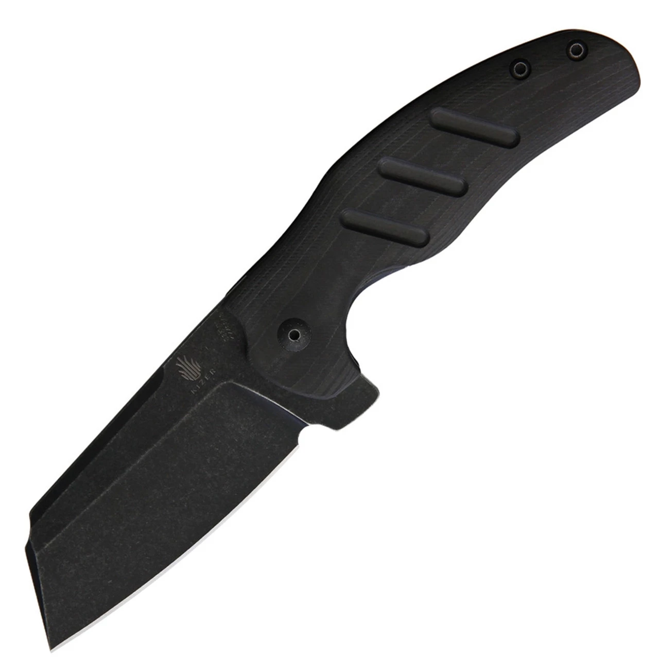 Kizer Sheepdog C01c Flipper (Ki4488A3) – 3.25″ S35VN Black Stonewashed Cleaver Blade, Black Carbon Fiber Handle