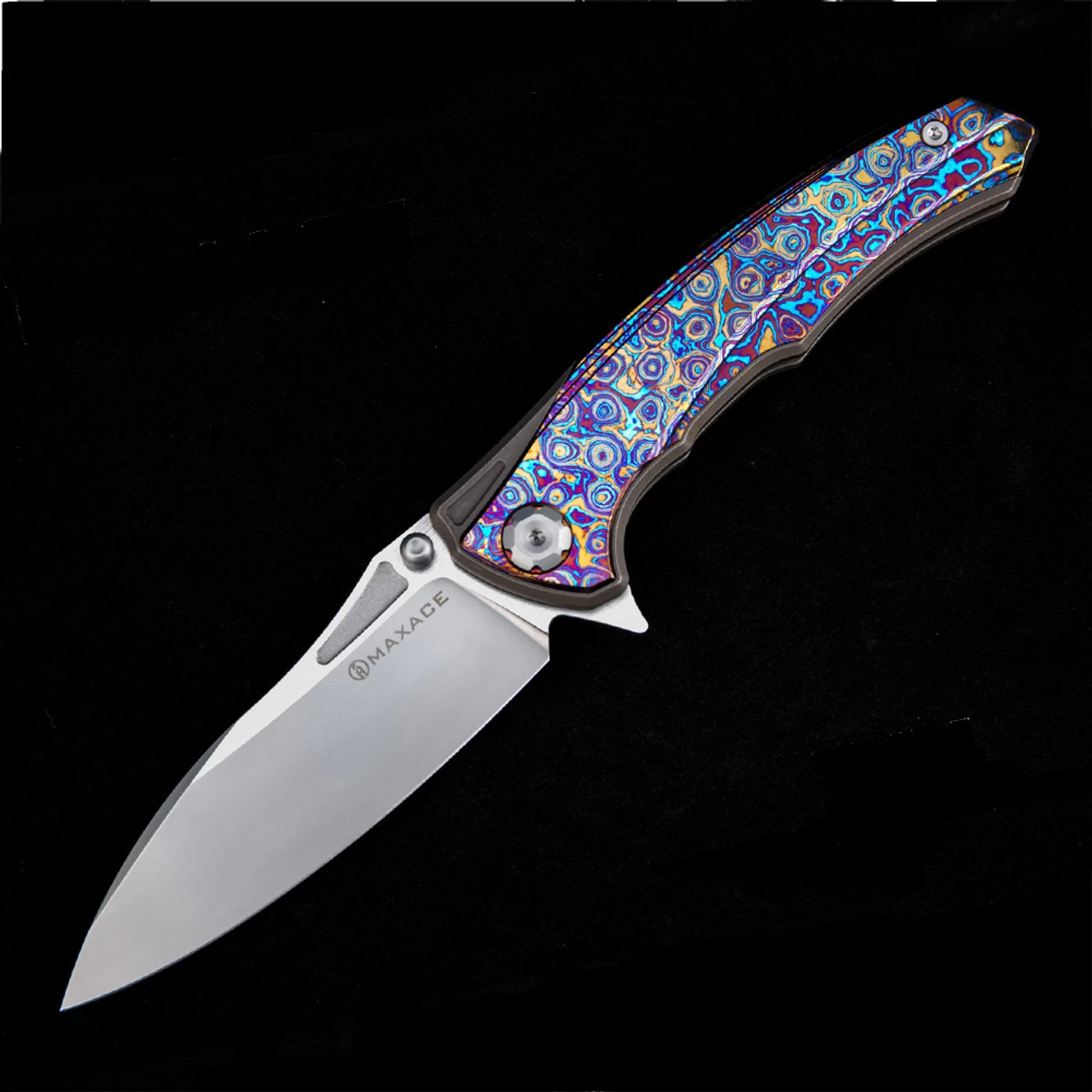 Maxace Corvus III Liner Lock (MC302) – 4.3″ M390 Satin Drop Point Blade, Gray Titanium Frame with Timascus Inlay