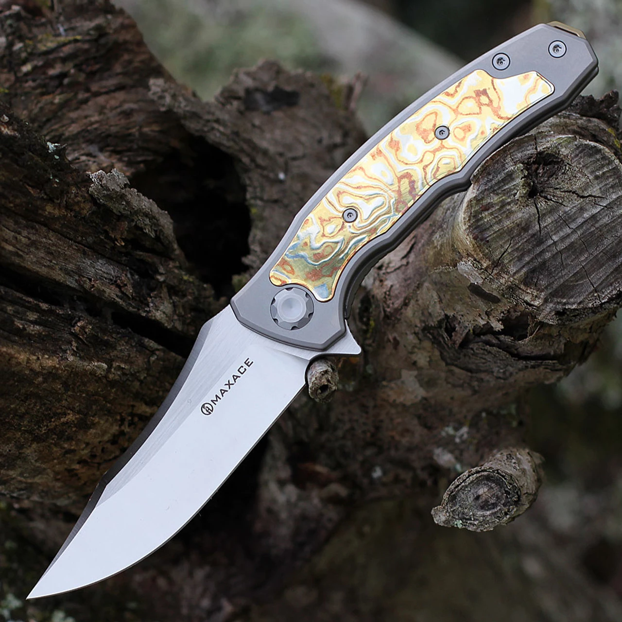 Maxace Halictus 2.0 Frame Lock (MHLT201) – 3.9″ M390 Satin Blade, – Titanium Handle with Mokume Inlay Â