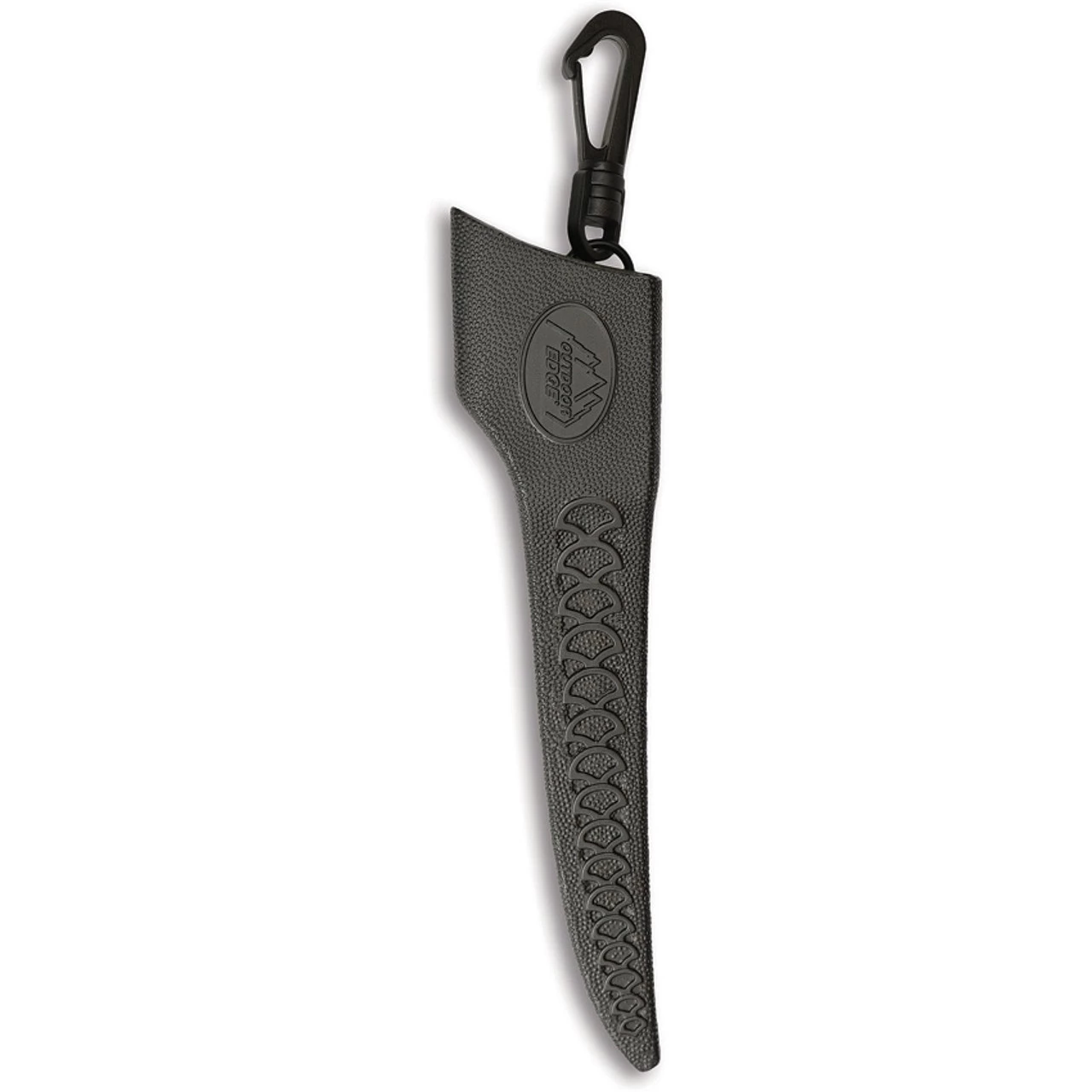 These professional grade fillet knives are crafted from German 4116 stainless steel for excellent edge retention and corrosion resistance. The ergonomically shaped TPE handles provide an extremely comfortable, non-slip grip. The Reel-Flex fillets are available in 6.0″, 7.5″ and 9.5″ blade lengths to meet the cutting demands for all types of fresh and saltwater species. Each knife includes a polypropylene sheath with swivel clip belt attachment. Designed by custom knife maker Jerry Hossom.