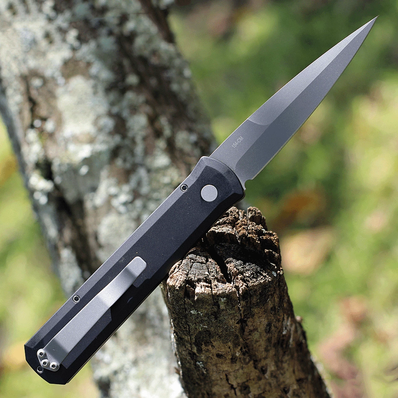 Pro-Tech Knives Godfather Automatic (920) – 4.0″ 154CM Bead Blasted Spear Point Plain Blade, Black Aluminum Handle