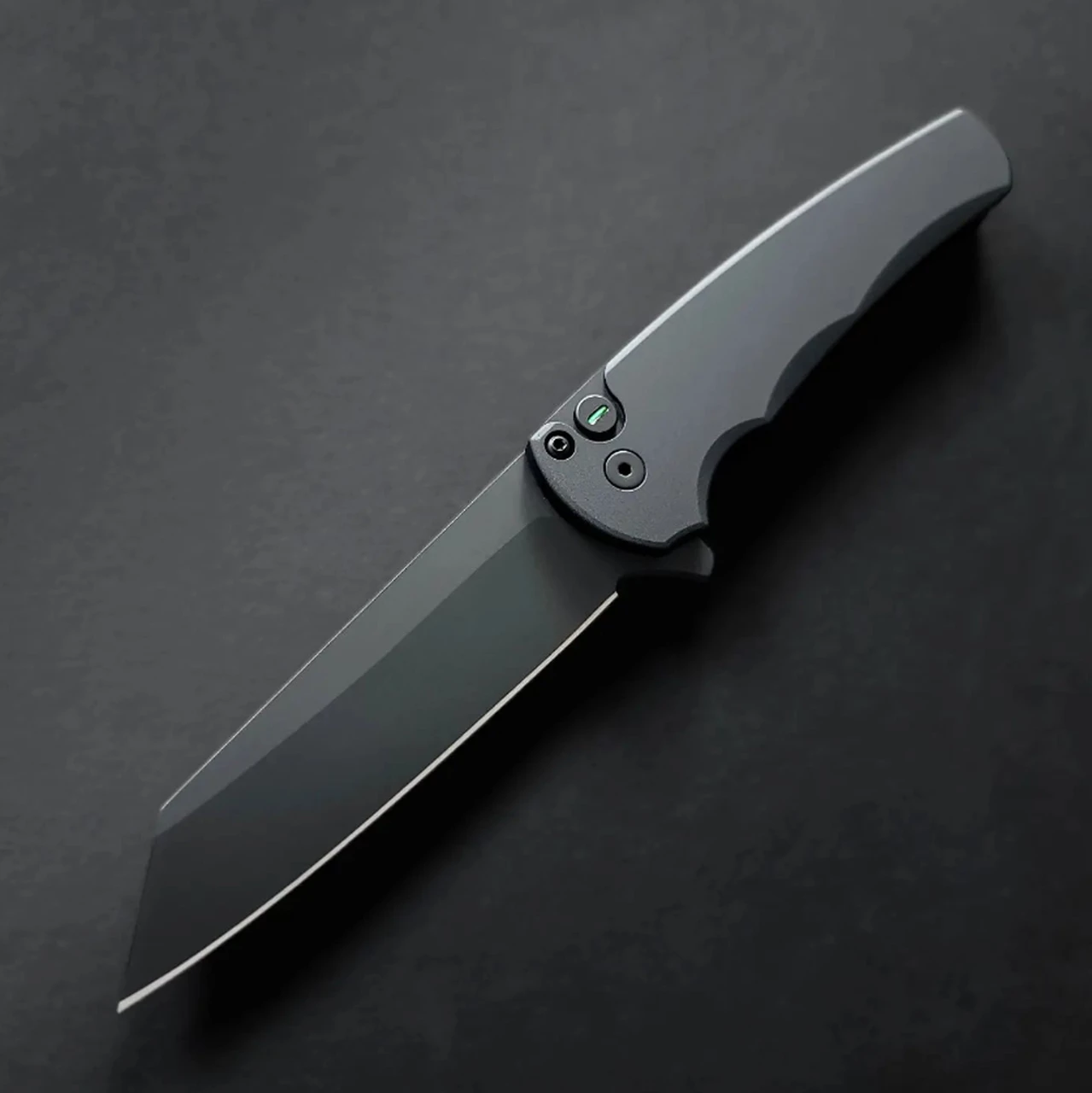 Pro-Tech Knives Malibu Operator (5203-OP) – 3.25″ CPM-20CV Sterile DLC Black Reverse Tanto, Black Aluminum Handle w/ Tritium Inlay Button