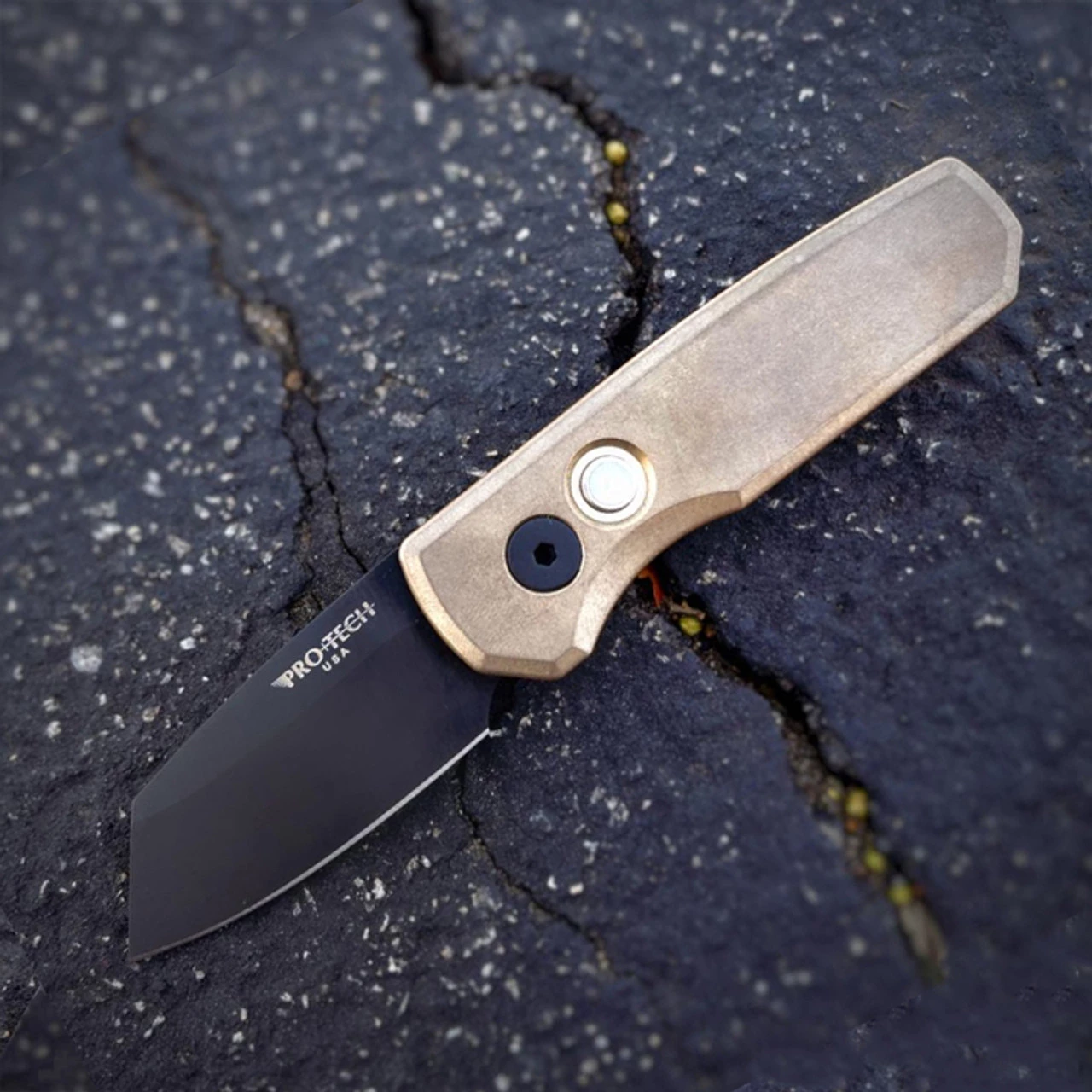 Pro-Tech Runt 5 Automatic (R5212) – 1.9″ CPM 20CV Black DLC Reverse Tanto, Smooth Stonewashed Bronze Handle