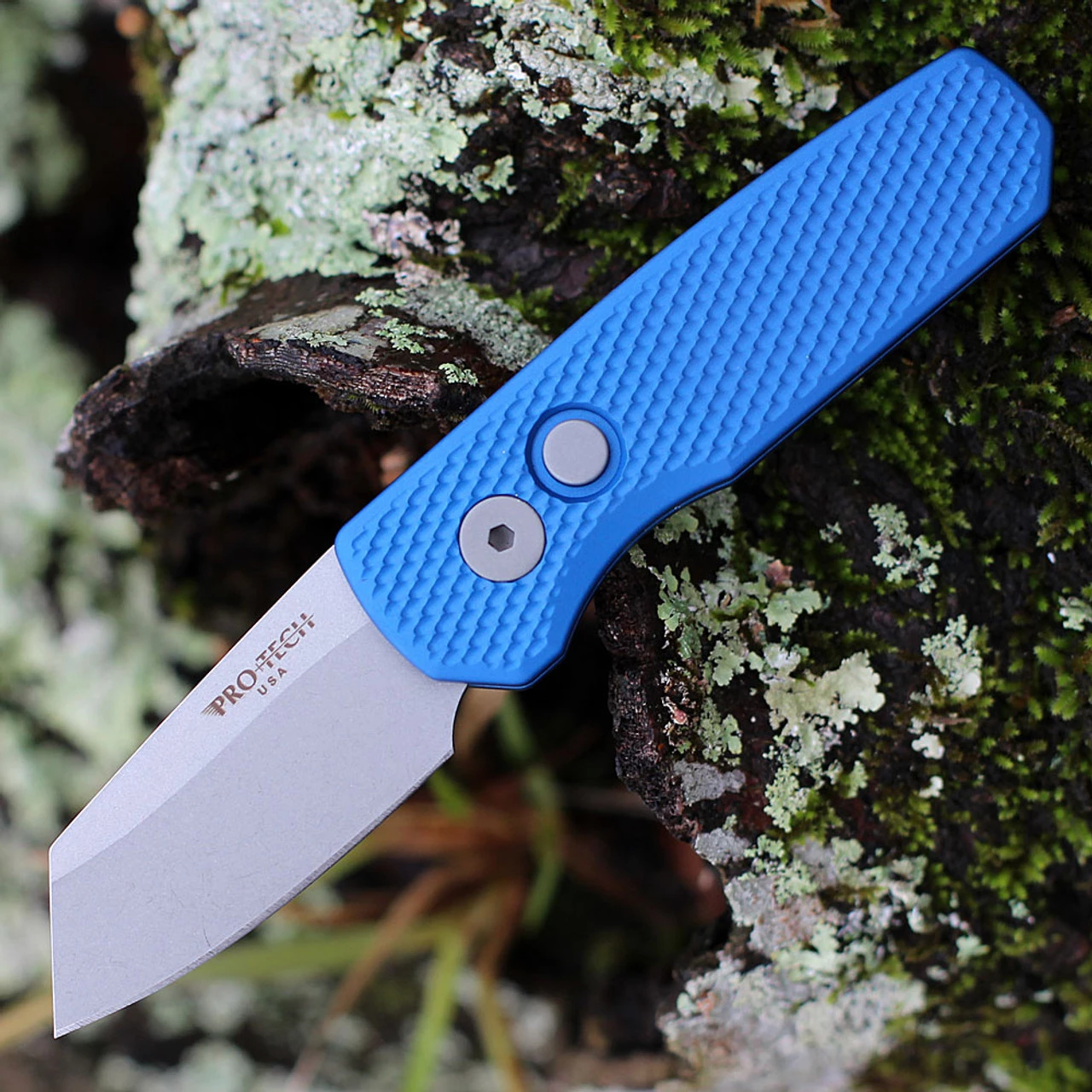 Pro-Tech Knives Runt 5 Automatic (R5205-BLUE) – 1.9″ CPM 20CV Stonewashed Reverse Tanto Blade, Textured Blue Aluminum Handle