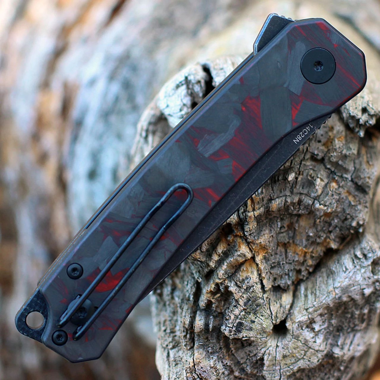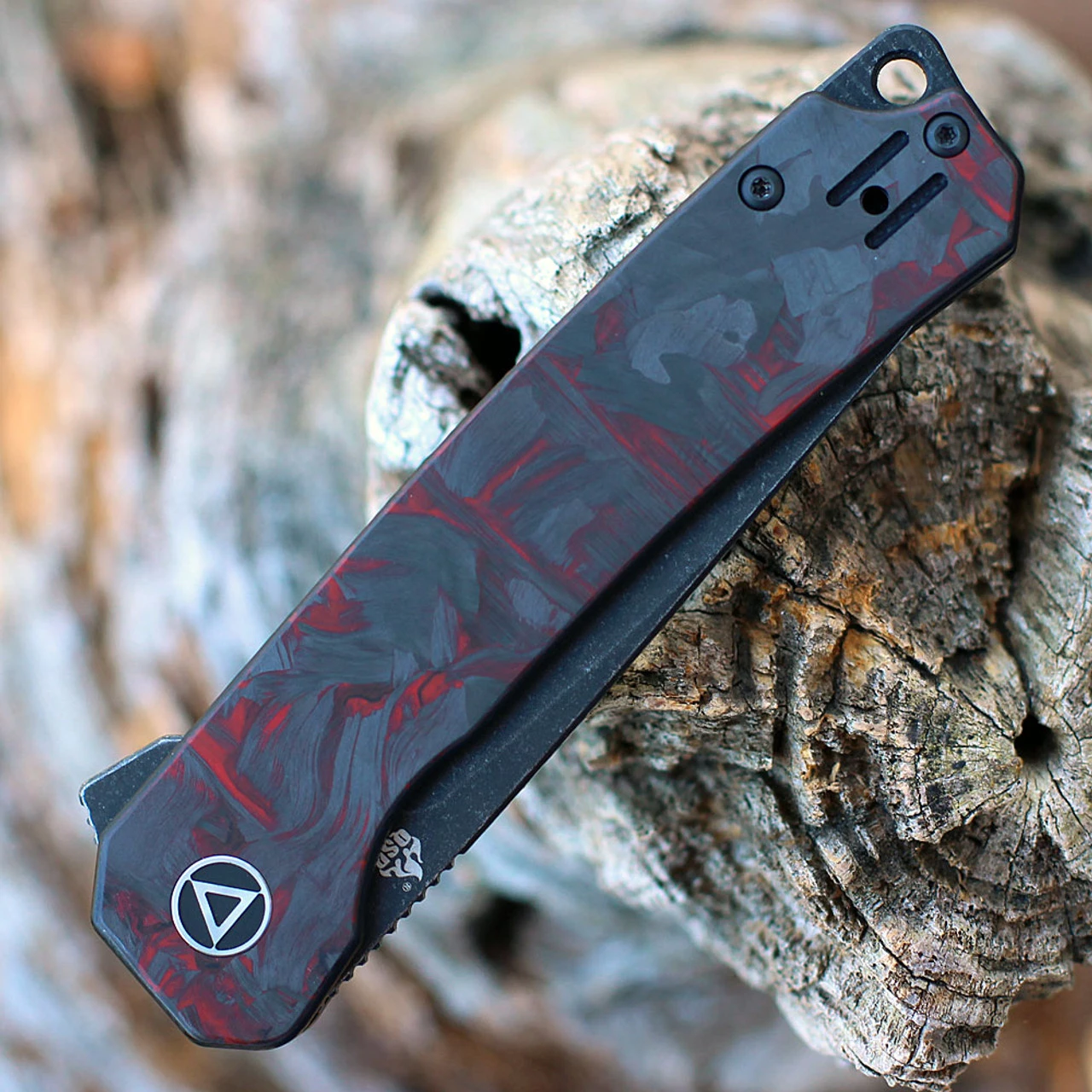 QSP Osprey (QS139-F2) – 3.25″ 14C28N Black Drop Point Blade, Black and Red G10/CF HandleÂ