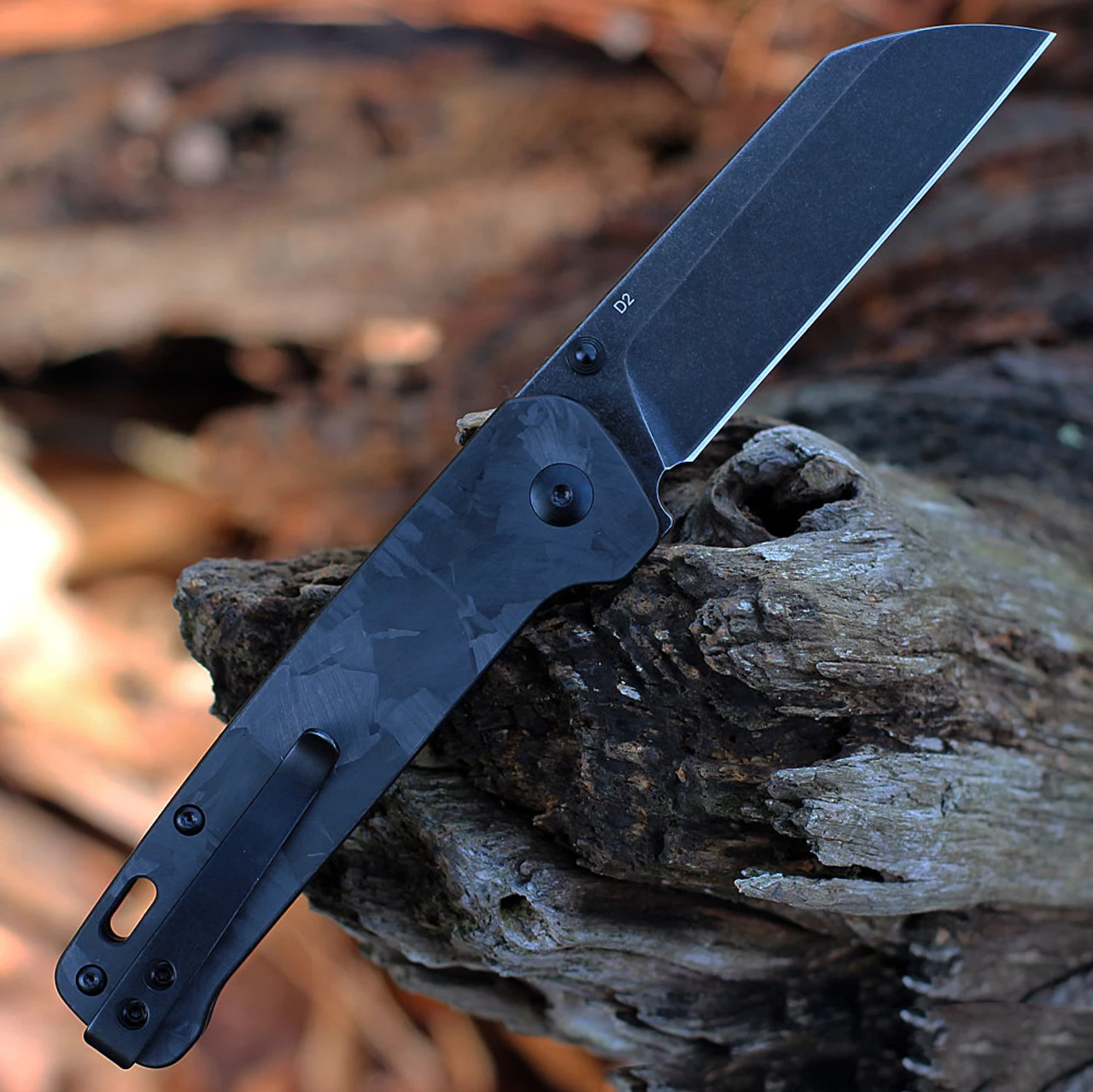 The QSP Penguin is probably the best EDC knife you can get for the money. The blade is made of D2 tool steel, and has a sheepsfoot blade shape with a straight edge.The deep carry pocket clip loops over and screws in behind the scale, making the knife slide in and out of pockets easily. The Penguin opens using the dual thumb studs and the copper washers.