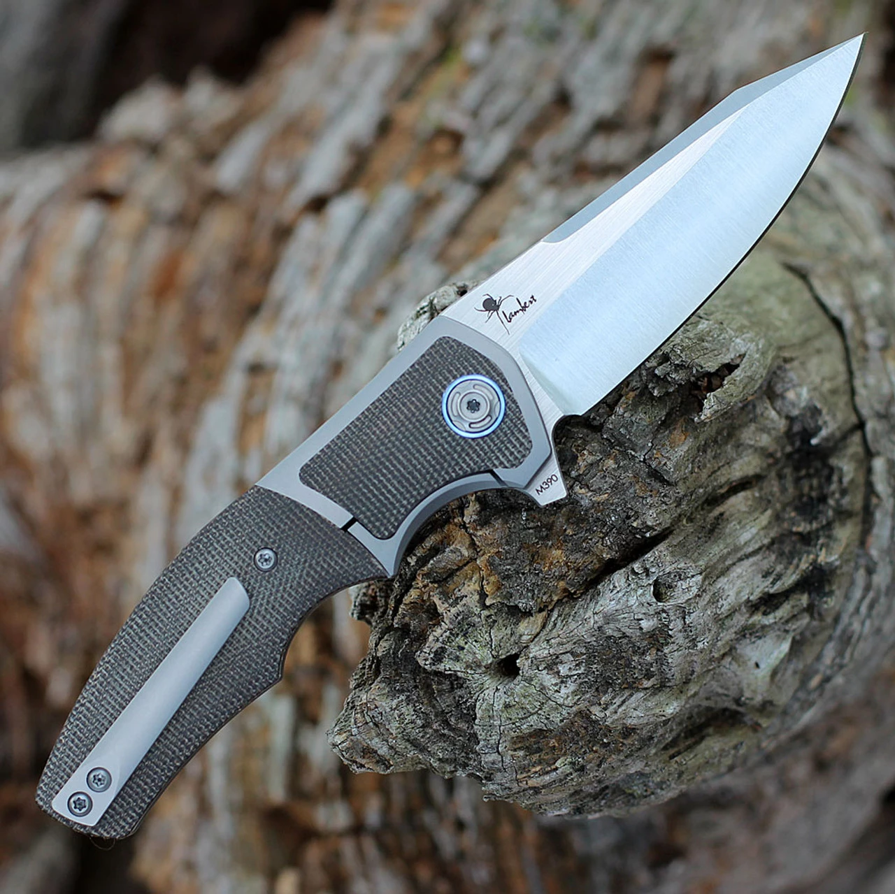 Reate + Kirby Lambert MINI Crossroads – 3.30″ M390 Satin Clip Point Blade, Bead Blast Titanium Frame with Green Micarta Inlay