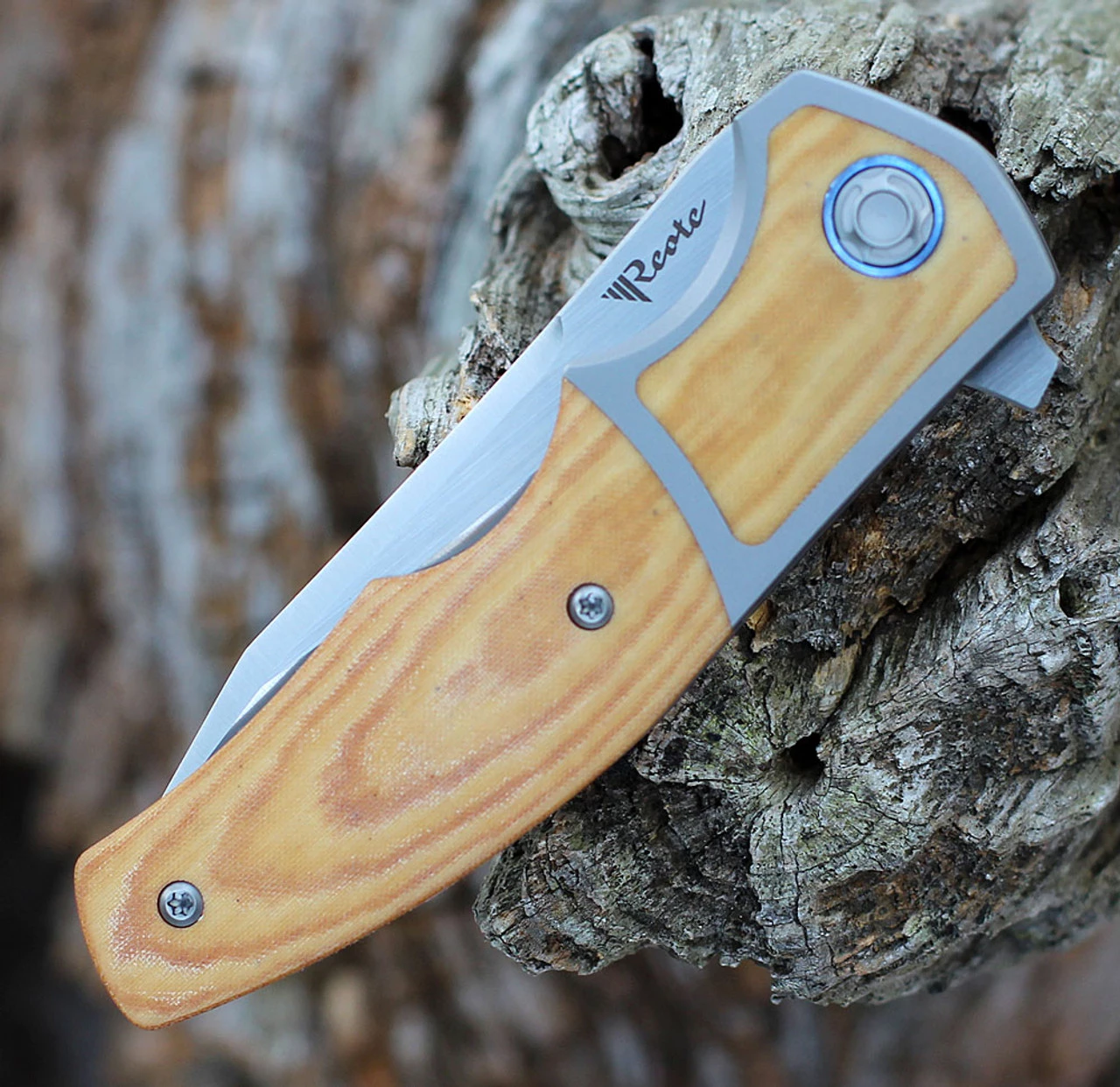 Reate + Kirby Lambert MINI Crossroads – 3.30″ M390 Satin Clip Point Blade, Bead Blast Titanium Frame with Natural Micarta Inlay