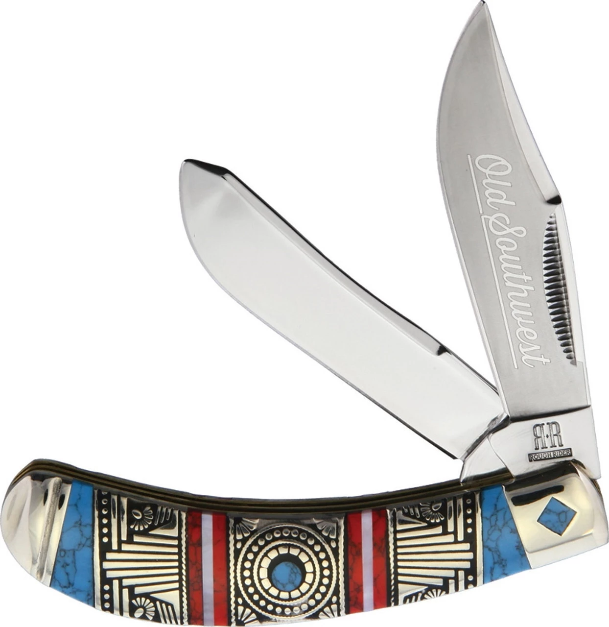 Rough Ryder Old Southwest Bow Trapper (RR1751) – 3.2″ 440A Stainless Steel Clip / Spey Satin Blades, Red / Turquoise Southwest Style HandleÂ