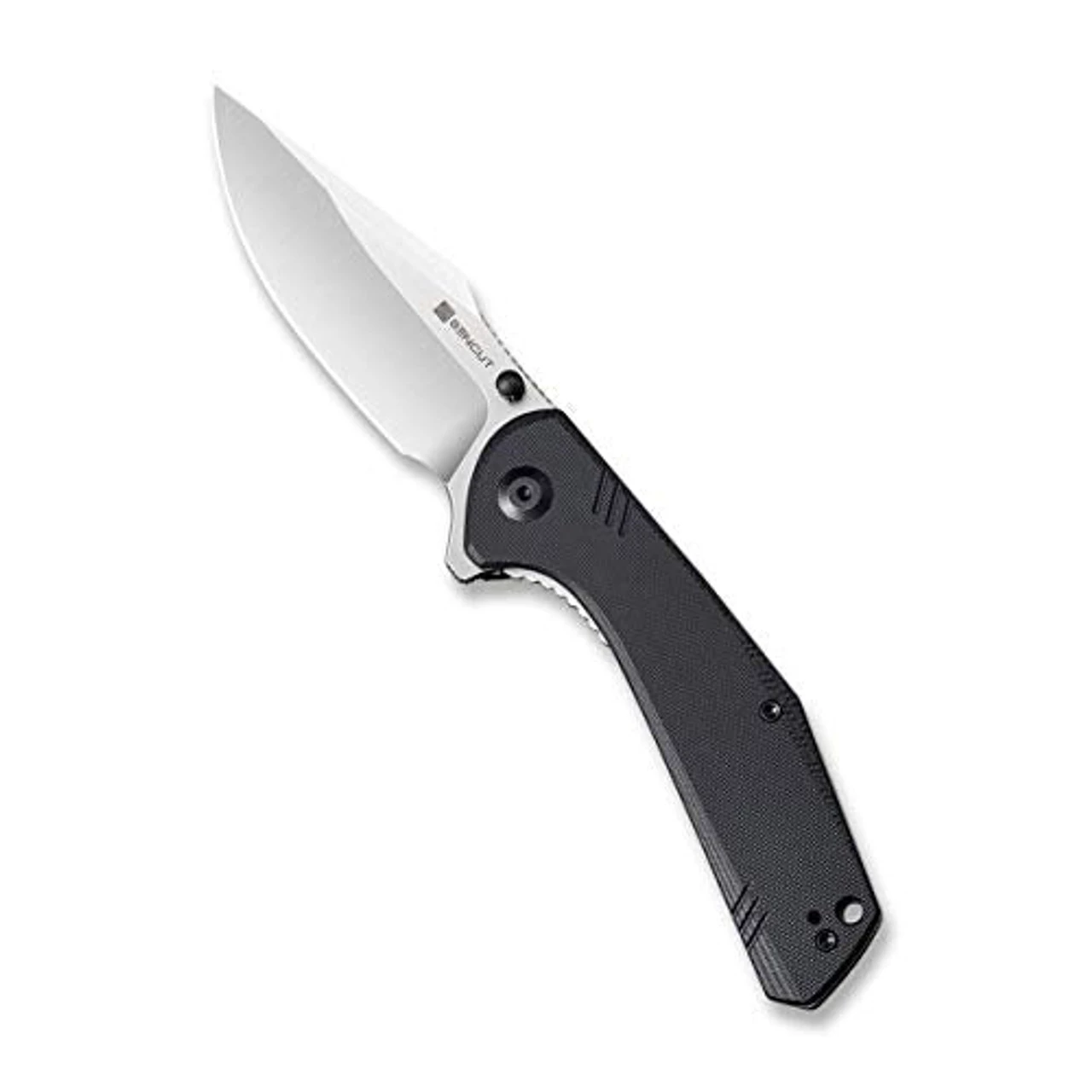 Sencut Actium Flipper (SA02B) 3.46 in Satin D2 Drop Point Plain Blade, Black G-10 Handle