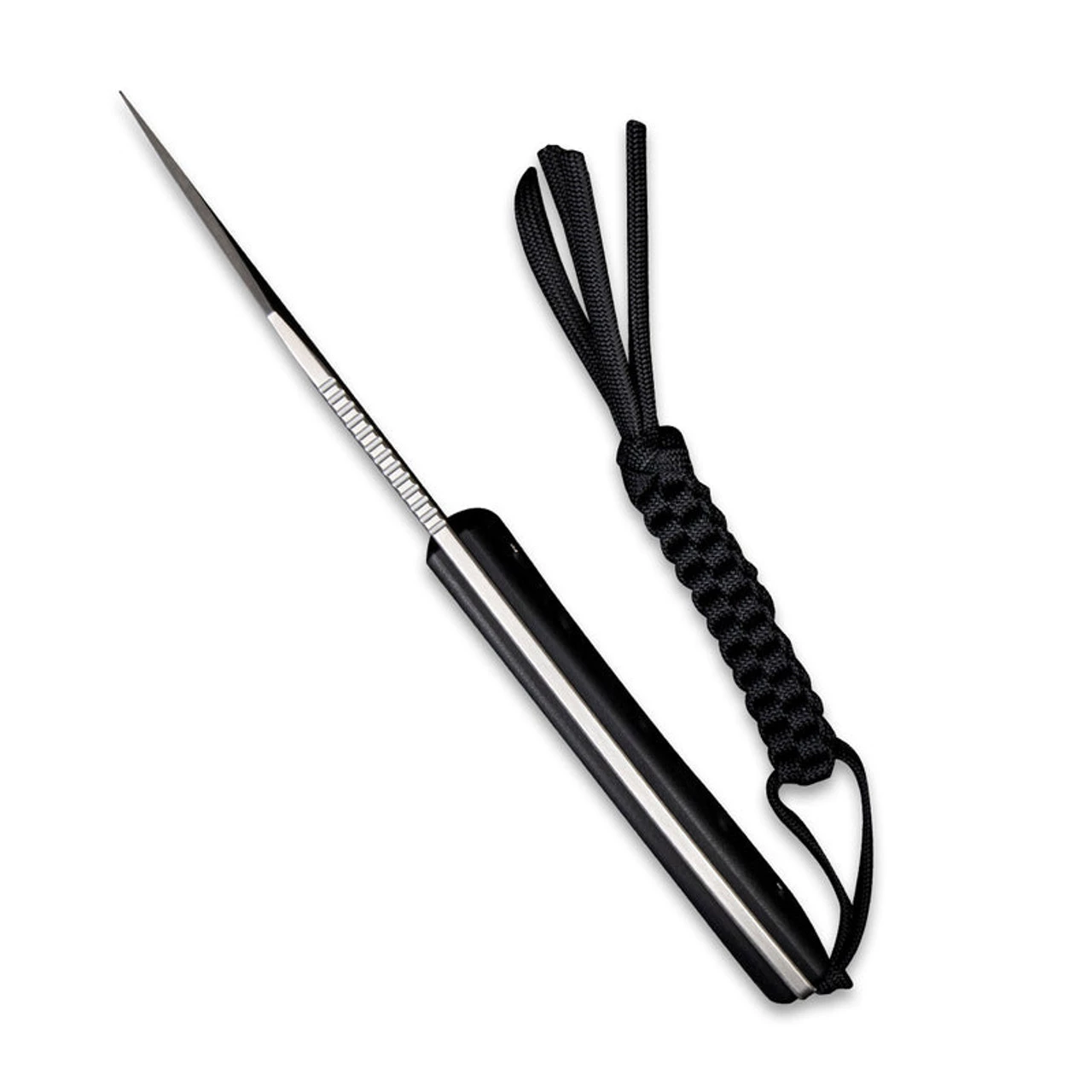 - Satin-finished clip point blade made from 9Cr18MoV stainless steel.
