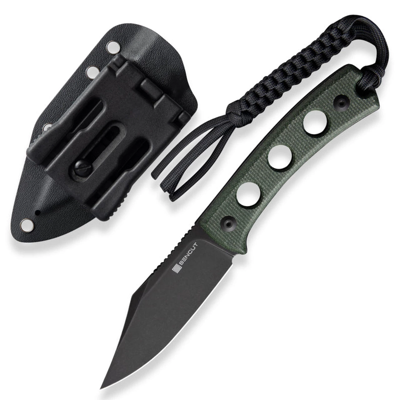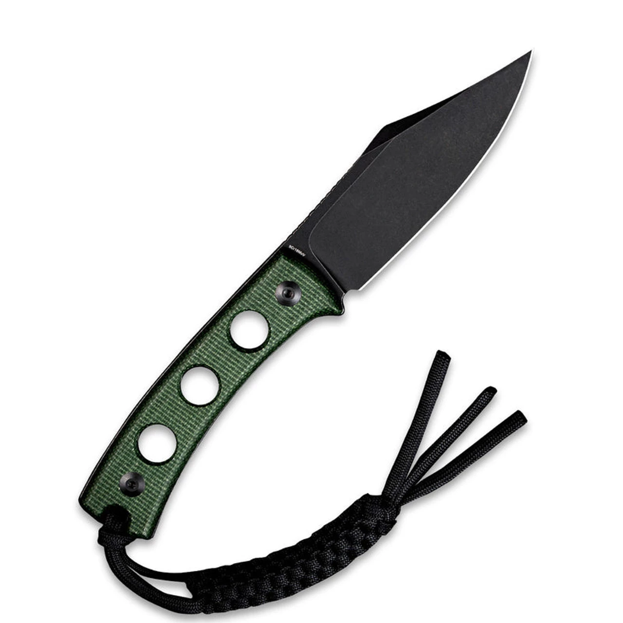 Sencut Waxahachie (SA11C) 3.7″ Black Stonewashed 9Cr18MoV Clip Point Plain Blade, Green Micarta Skeletonized Handle