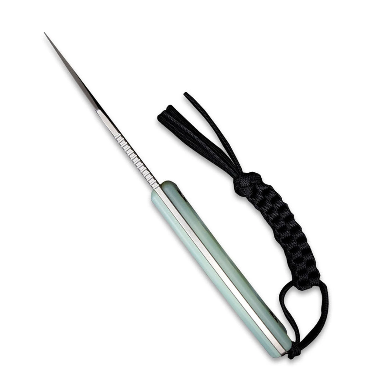 - Satin-finished clip point blade made from 9Cr18MoV stainless steel.