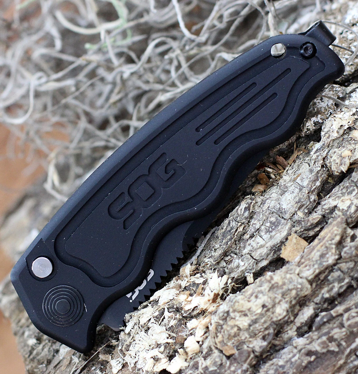 Drawing from the original SOG automatic, the SOG-TAC Mini provides all of the features of the SOG-TAC in a small package. Made from AUS-8 and 6061-T6 aluminum, SOG-TAC Mini features a contured handle for maximum grip, making it ideal for self-defense. Durable and easily concelable, SOG-TAC Mini is a small yet reliable automatic.
