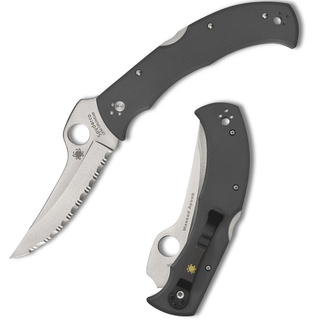 Spyderco Massad Ayoob Sprint Run (C60GSGY) – 3.69″ Cru-Wear Satin Serrated Blade, Gray G-10 HandleÂ