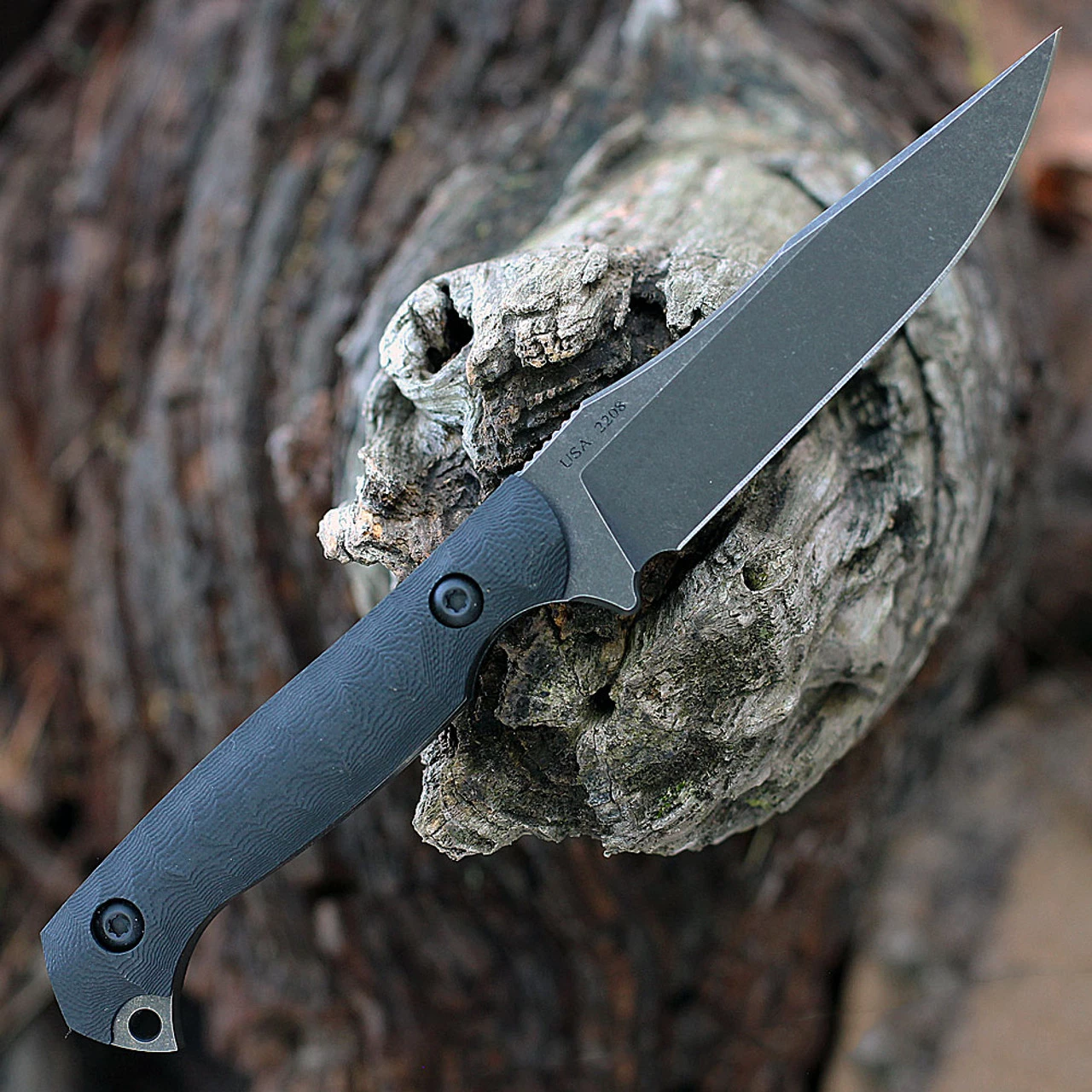 Krypteia has a proven track record of versatility and protection. Additionally, it’s fitted with a textured handle, includes a thumb ramp with jimping for reverse drawing the blade, and a lanyard hole for retention cords. The blade is flat-ground almost all the way to the spine, which provides a razor edge and increases the sharpening life.
