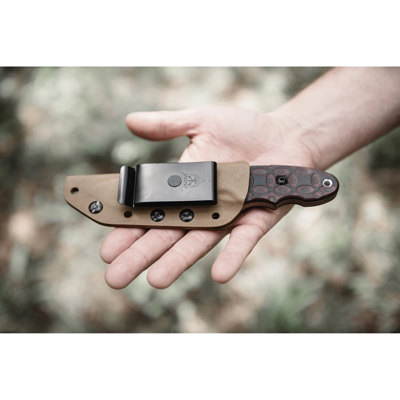 The purpose of the C.A.T.’s was to provide a solid back-up blade that is easy to conceal and could save lives in the right scenario and with proper training. It is a small, strong, highly versatile knife that is easy to use and maintain. The design allows for good penetration and slashing cuts as well as a multitude of EDC uses. The kydex sheath helps maintain a low profile and has a rotating clip so it can easily be worn in multiple carry positions.