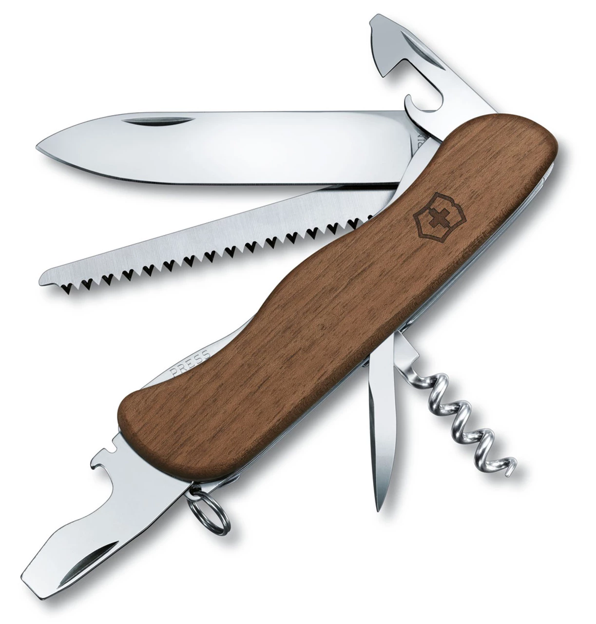 Although the forest is its natural habitat, our Forester Wood works just as effortlessly exploring the extremities of the urban jungle. The 10 fully integrated functions include a screwdriver, large locking blade and wood saw. Crafted in beautiful walnut, the scales reflect this large pocket knife’s close affinity to nature.