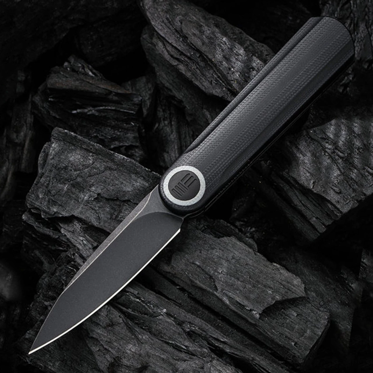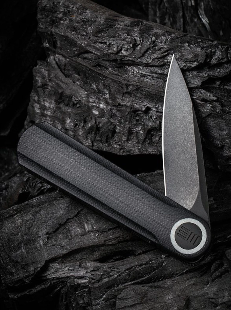 WE Knife Co. Eidolon Front Flipper (WE19074A-D) – 2.9″ CPM-20CV Black Stonewashed Drop Point Blade, Black G10 HandleÂ