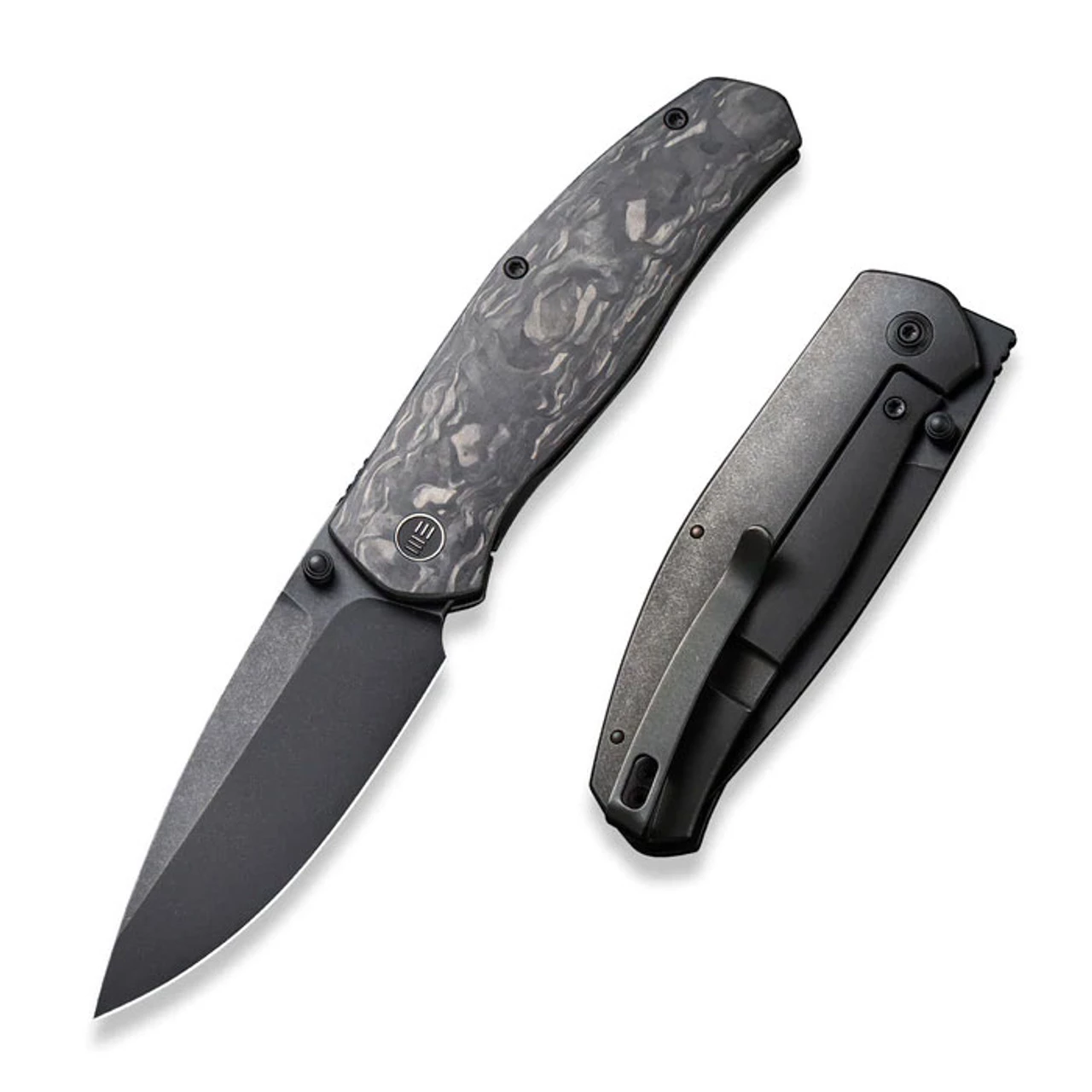 WE Knife Co. Esprit Thumb Stud / Front Flipper (20025A-C) 3.25″ CPM-20CV Black Drop Point Blade, Carbon Fiber / Titanium Handles
