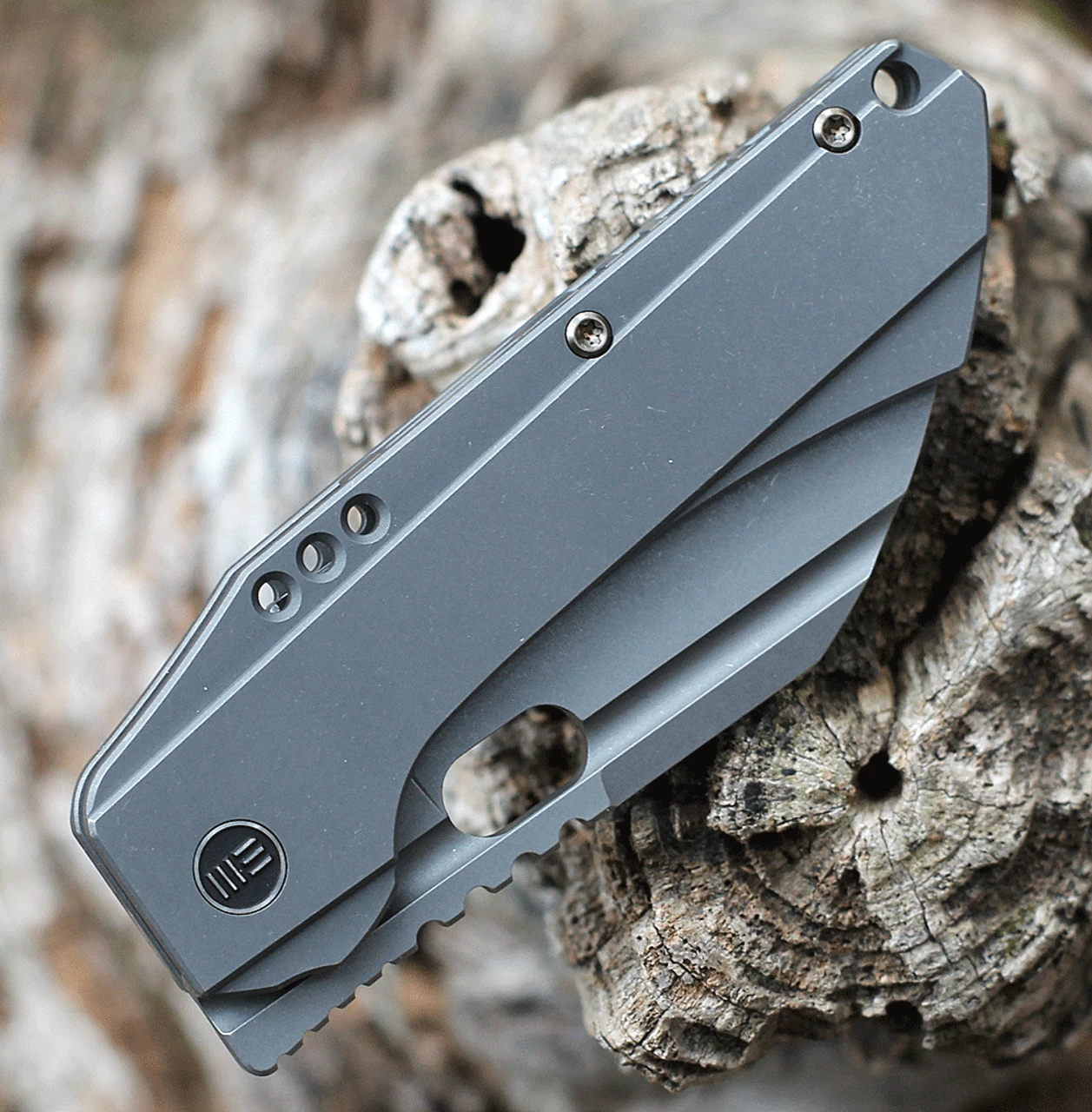 WE Knife Co. Roxi 3 Front Flipper (WE19072-1) – 3.14″ CPM S35VN Gray Stonewashed Wharncliffe Blade, Gray Titanium Handle