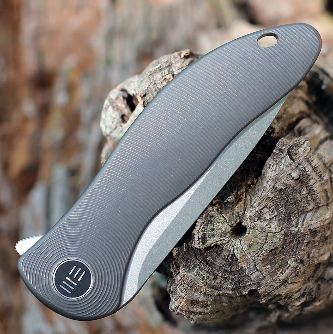 WE Knife Synergy 2v2 Flipper( WE18046D1) – 3.49″ Stonewash Drop Point CPM 20CV Plain Blade, Gray Integral 6Al4V Titanium Handle
