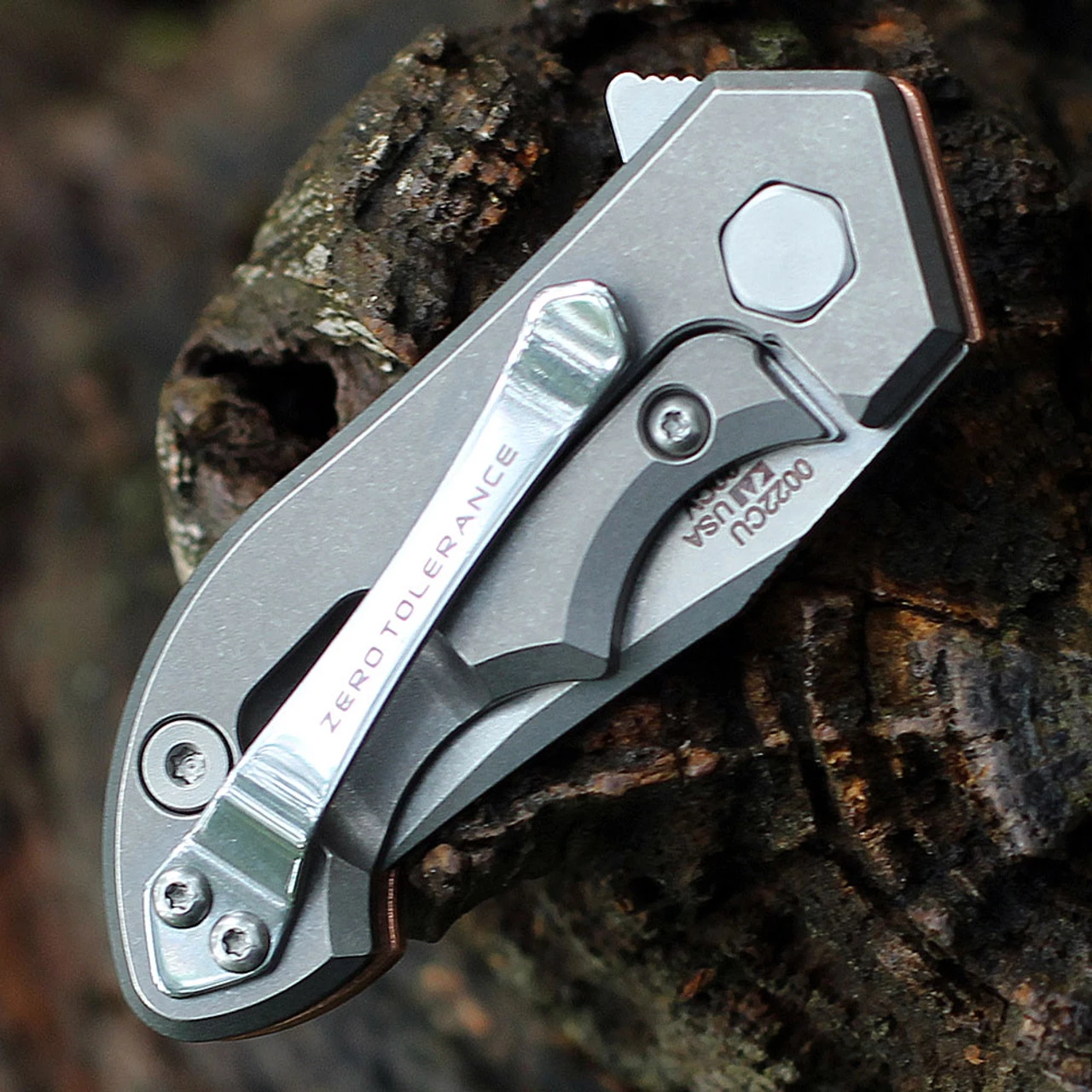 Zero Tolerance Galyean Factory Special Series (0022CU) – 1.8″ CPM 20CV Stonewashed Clip Point Blade, Copper Handle with Titanium Frame Handles